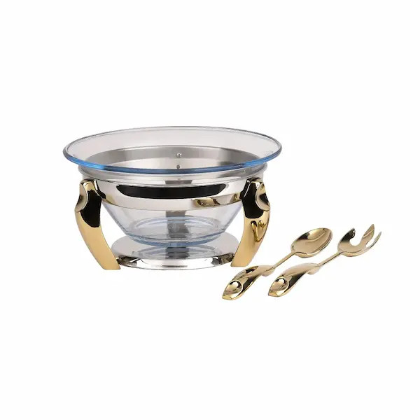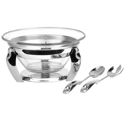 ساخته شده از استیل ضدزنگ ظرفیت ۴ لیتر دارای ظرف پیرکس دارای یک عدد قاشق و چنگال سرو سالاد