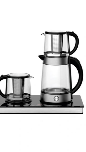 چای ساز با کیفیت برند ترام هوس توان هم بصورت جدا هم کنار همی قابل استفاده هست یک کتری با نورپردازی آبی رنگ و دو عدد قوری جوش آور و تنظیم درجه حرارت برای استفاده قهوه،چای و انواع دمنوش استیل ضد زنگ سیستم خاموشی خودکار برای زمانی که کتری خالی هستش سینی شیشه ای کنترل پنل لمسی دیجیتال